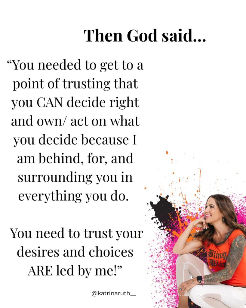 “You needed to get to a point of trusting that you CAN decide right and own/ act on what you decide because I am behind, for, and surrounding you in everything you do.