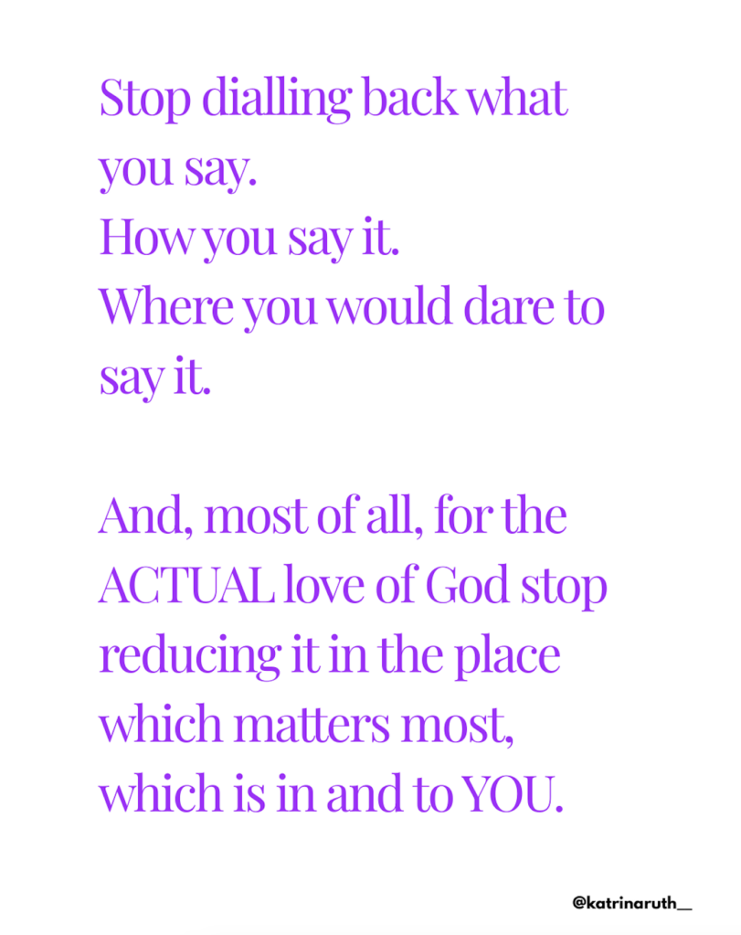 And, most of all, for the ACTUAL love of God stop reducing it in the place which matters most, which is in and to YOU.